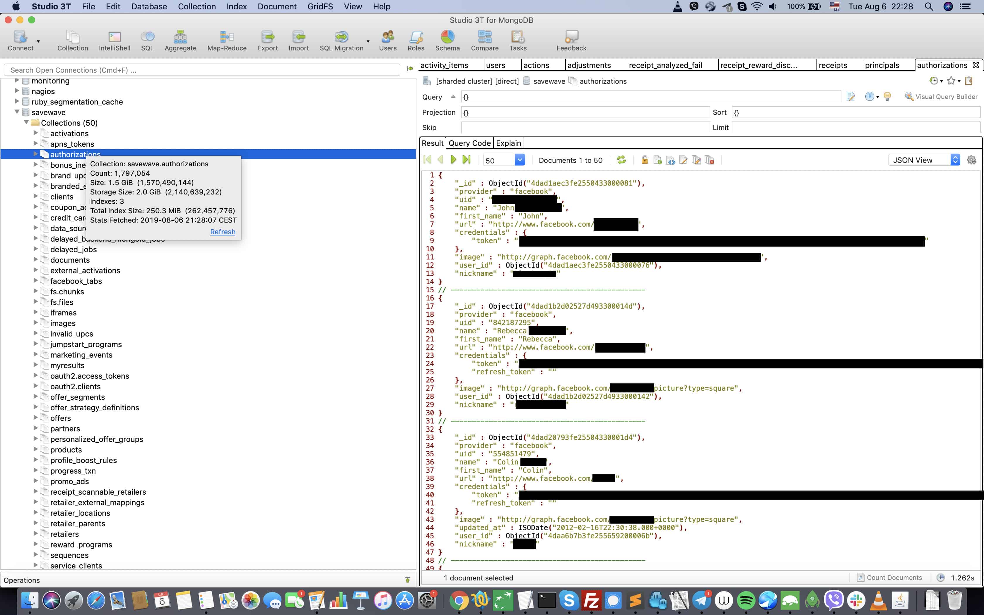 - 1,797,054 Facebook-authorized users (full name, nickname, Facebook profile URL, login token, image link)