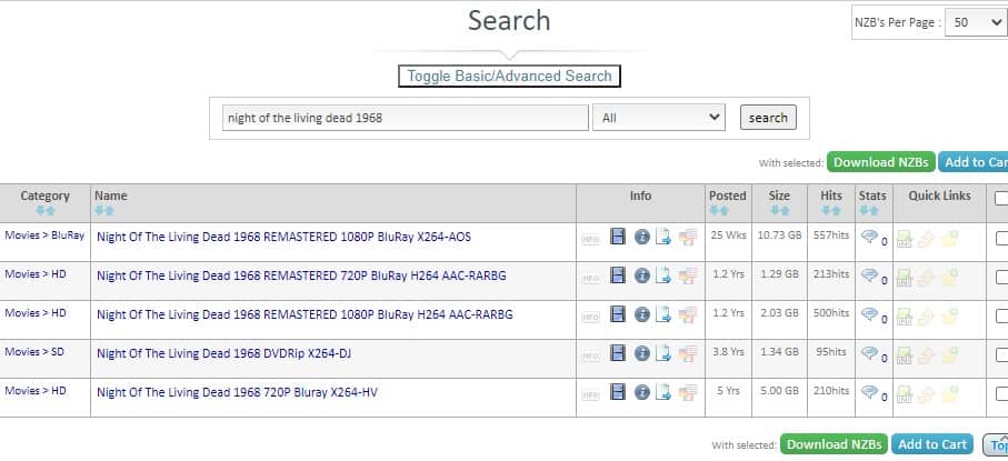 Note that the basic search on Binsearch will return results that only include parts of files, meaning you have to check all the parts separately and hit “Create NZB” to get a single working file. This can be difficult for new users who might not know what to look for, so we recommend toggling the “only show collections” option in the advanced search. This returns pre-made NZBs that usually contain all the necessary parts of a file.