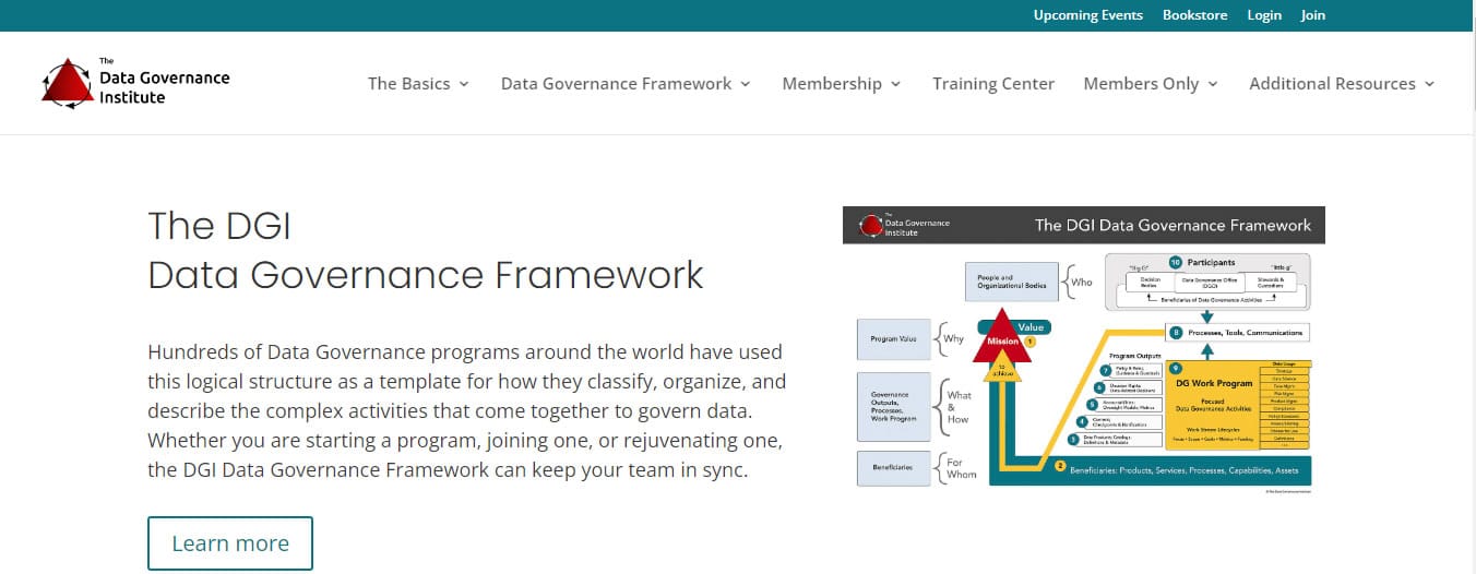 DGI is one of the web’s most trusted sources of information about Data Governance, Data Stewardship, and related topics. It provided resources, education, and expertise to help organizations effectively manage and govern their data assets. DGI provides training and certification programs for individuals and organizations looking to develop their expertise in data governance. These programs often covered topics like data stewardship, data quality management, and data governance framework implementation.