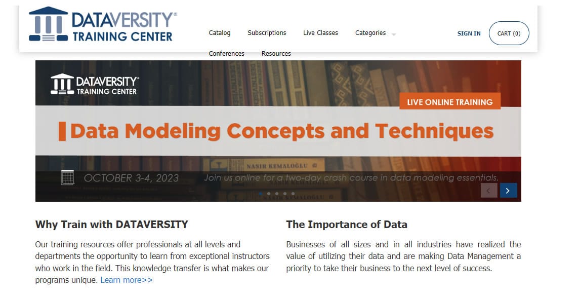 The organization offers a flexible approach to learning, encompassing both in-person and online training formats, allowing participants to tailor their educational experience to their unique preferences and schedules. The DATAVERSITY Training Center represents an online platform dedicated to empowering data-driven professionals. Boasting a diverse catalog of over 50 specialized data governance courses suitable for both individuals and organizations, DATAVERSITY ensures comprehensive coverage of this vital discipline.