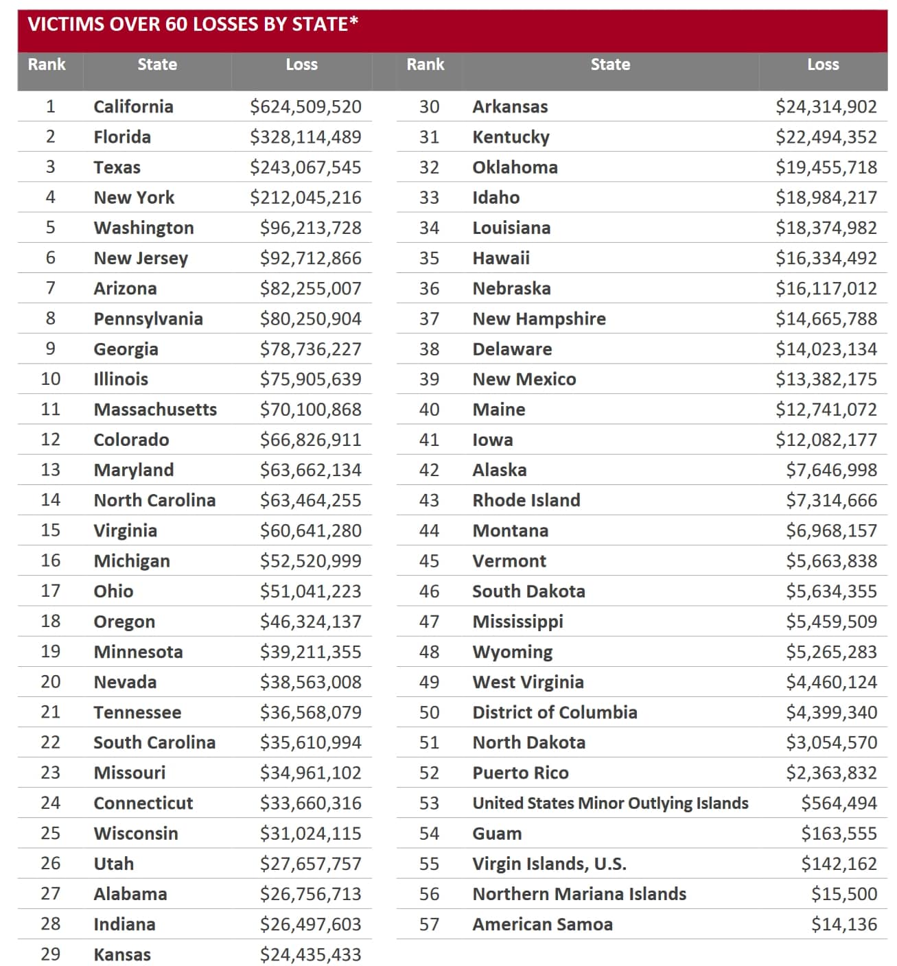 The losses from fraud in California resulted in over 60s losing more than $624 million. That is a significant increase over the 2020 report, which indicated losses of $152 million for Californian seniors.