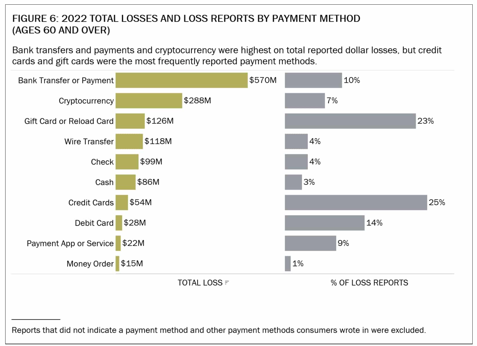The FTC’s latest report reveals that older adults most often reported paying fraudsters by credit card (25%) or with gift cards and reload cards (23%).