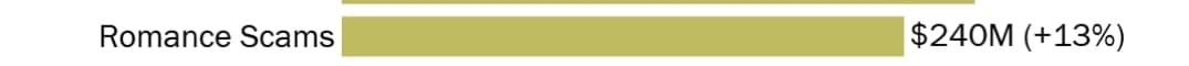 For those aged 60 and over, Romance scams rose 13 percent between 2021 and 2022. This type of scam uses the promise of romance to lure victims. It incurred losses of $240 million during that period. In 2020, aggregate losses for over 60s totaled $84 million from romance scams.