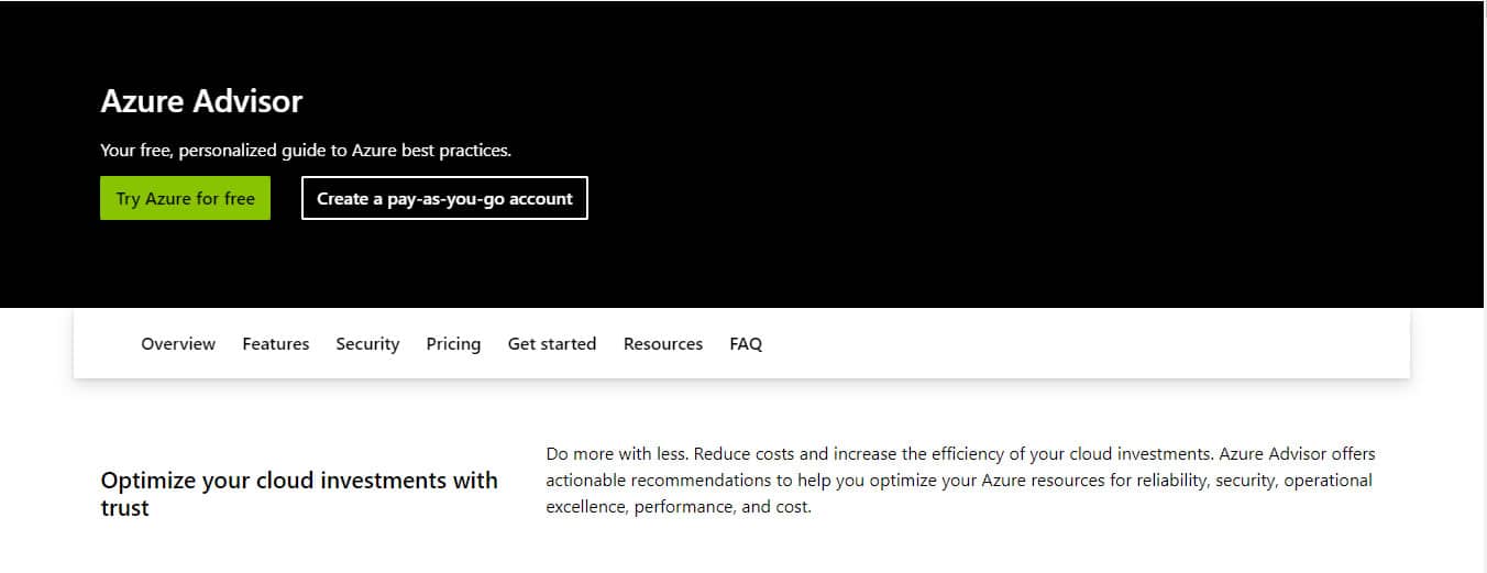 - Azure Advisor This service is available from the account dashboard in the Azure Portal and it explains the benefits and costs of each Azure service.