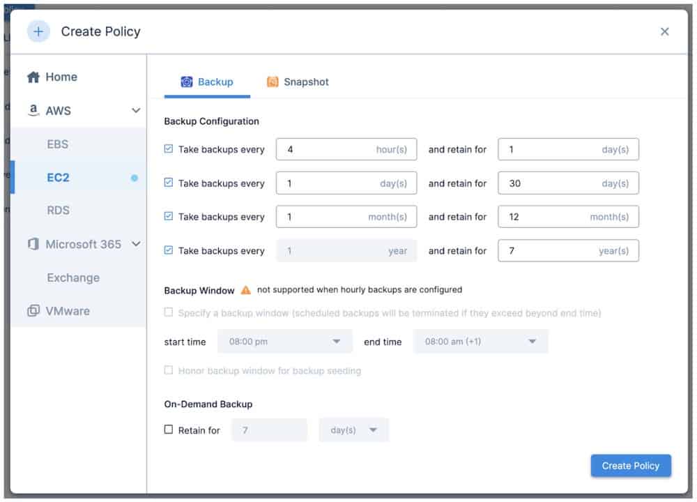 - Tight integration with AWS services, specifically designed to backup and protect AWS workloads, including EC2 instances.
