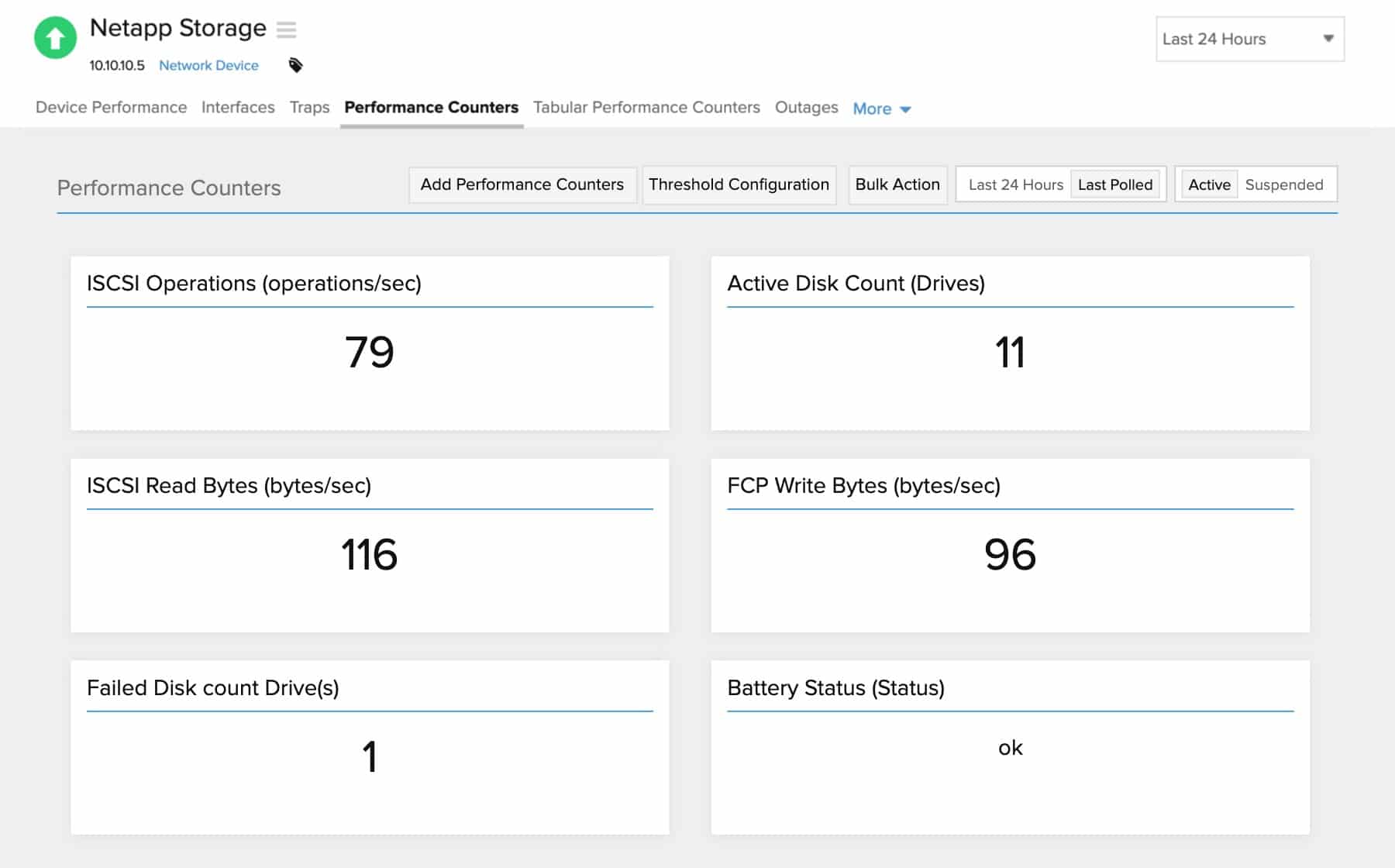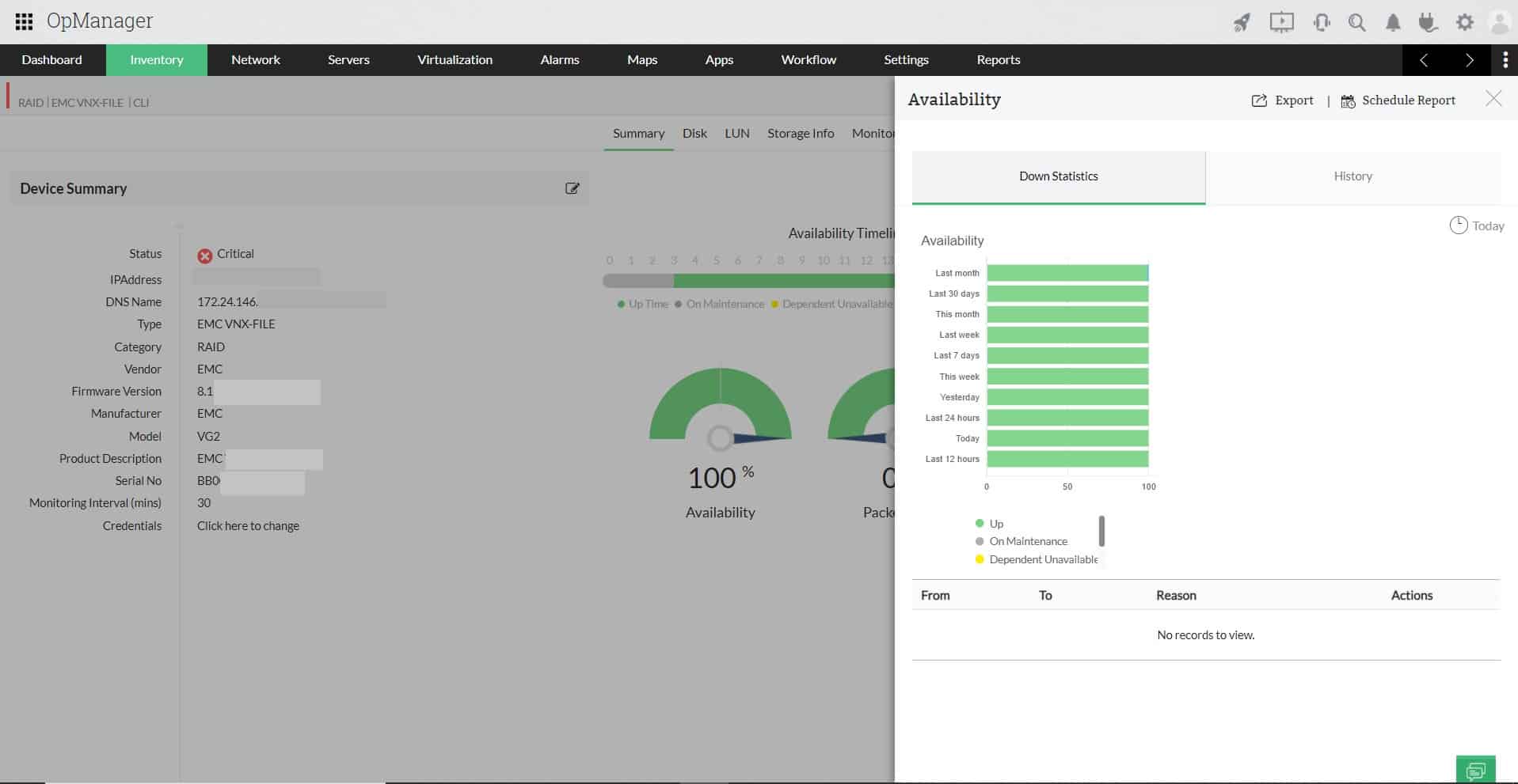 ManageEngine OpManager is a package of network and server monitoring systems. As well as monitoring individual storage servers, this system specializes in monitoring SAN arrays. This system provides multi-level monitoring because you can immediately see whether performance issues with data access are caused by problems with a storage system or with the network.
