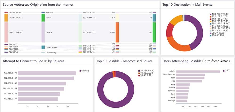 Logpoint is a Denmark-based cybersecurity solution provider that develops SIEM and other security products. Logpoint SIEM collects, stores, and analyzes log data from the entire IT infrastructure to detect suspicious activities and respond to threats. However, the modular design of the solution means that the SIEM tool is a bundle of security capabilities including automated compliance management, operational performance monitoring, and log management. Just as the name implies, Logpoint demonstrates expertise in log aggregation, management, and analysis.