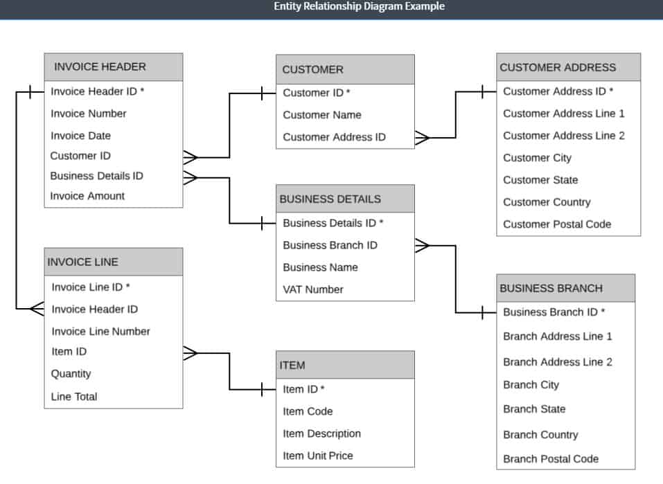 Customer Address is related to Customer Name more than Invoice Header ID, so these fields should be split out, creating a CUSTOMER entity and a CUSTOMER ADDRESS entity.